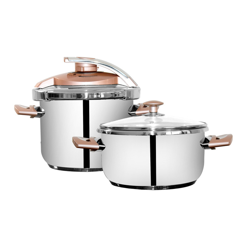 ست زودپز دوقلوی استیل صورتی 6+4 لیتری کاراجا مدل 502000516