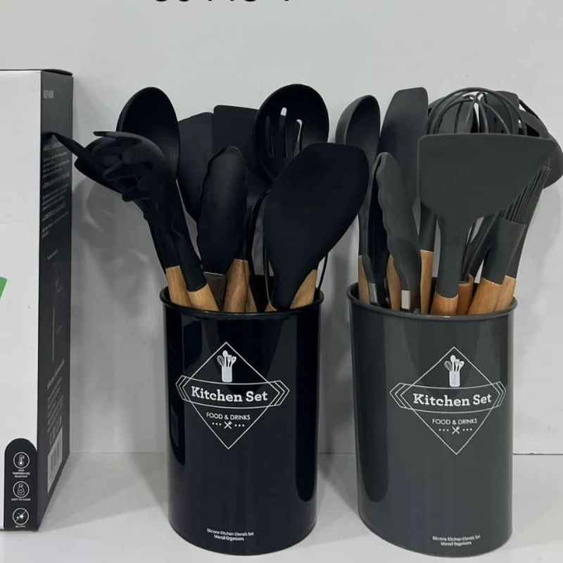 کفگیر و ملاقه سیلیکونی بسیار با کیفیت در دو رنگ زیبا مشکی و طوسی 12پارچه