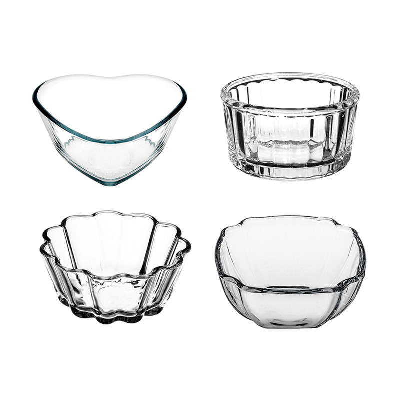ست های فر بورکام ظروف پخت کوچک ایده آل برای وعده های تک نفره قالب کیک 4 تکه 118 میلی متر + 100 میلی متر + 116 میلی متر + 120 میلی متر ست کاسه پیرکس 1 کاسه گرد 1 کاسه شش ضلعی 1 کاسه مربع کاسه مدل قلب 1 عدد