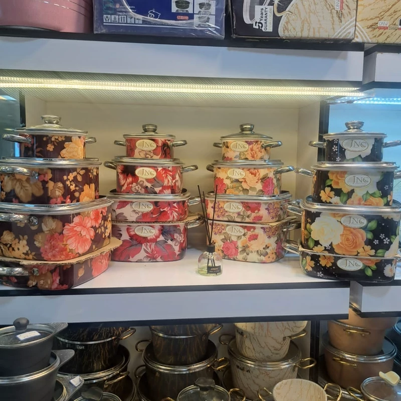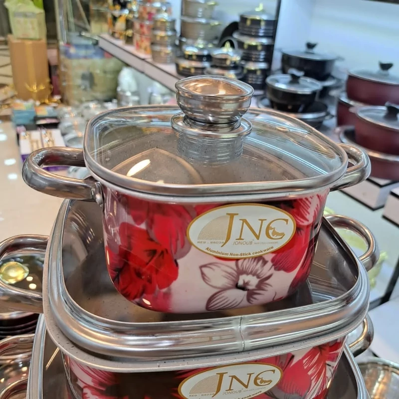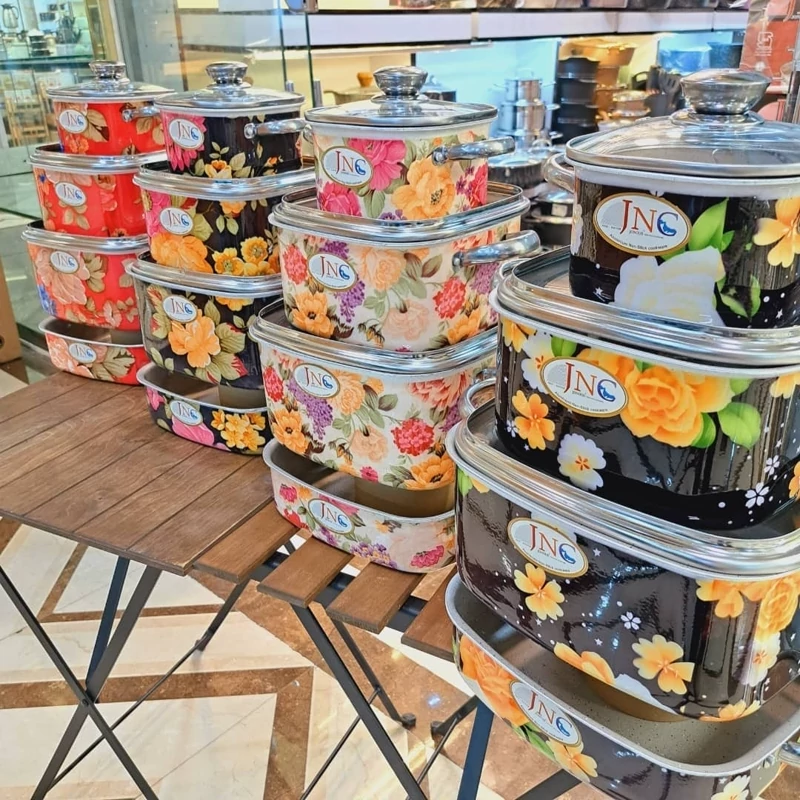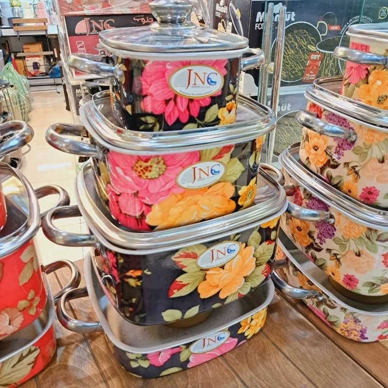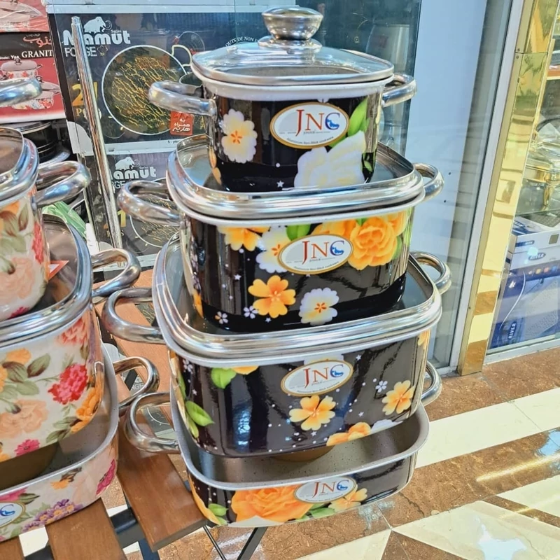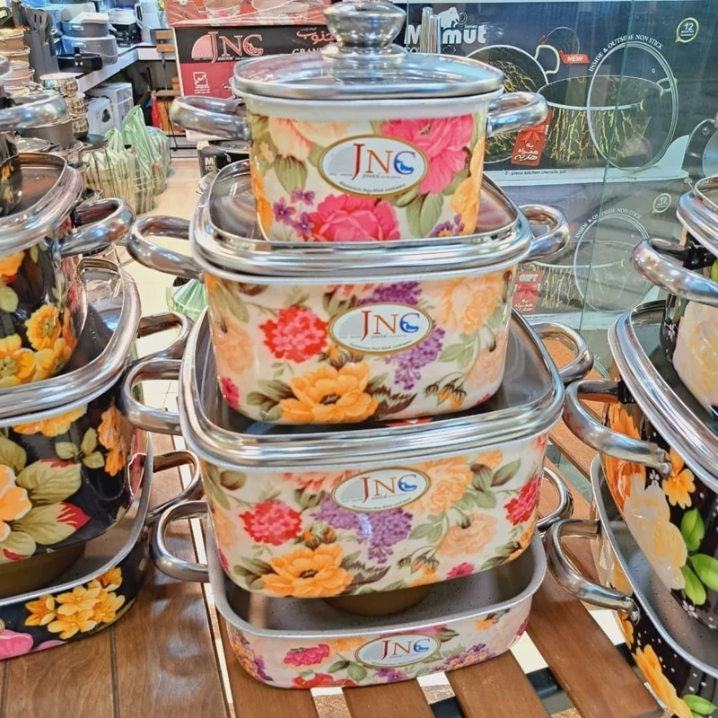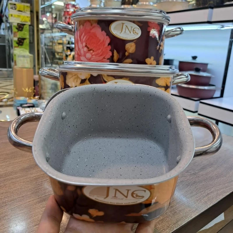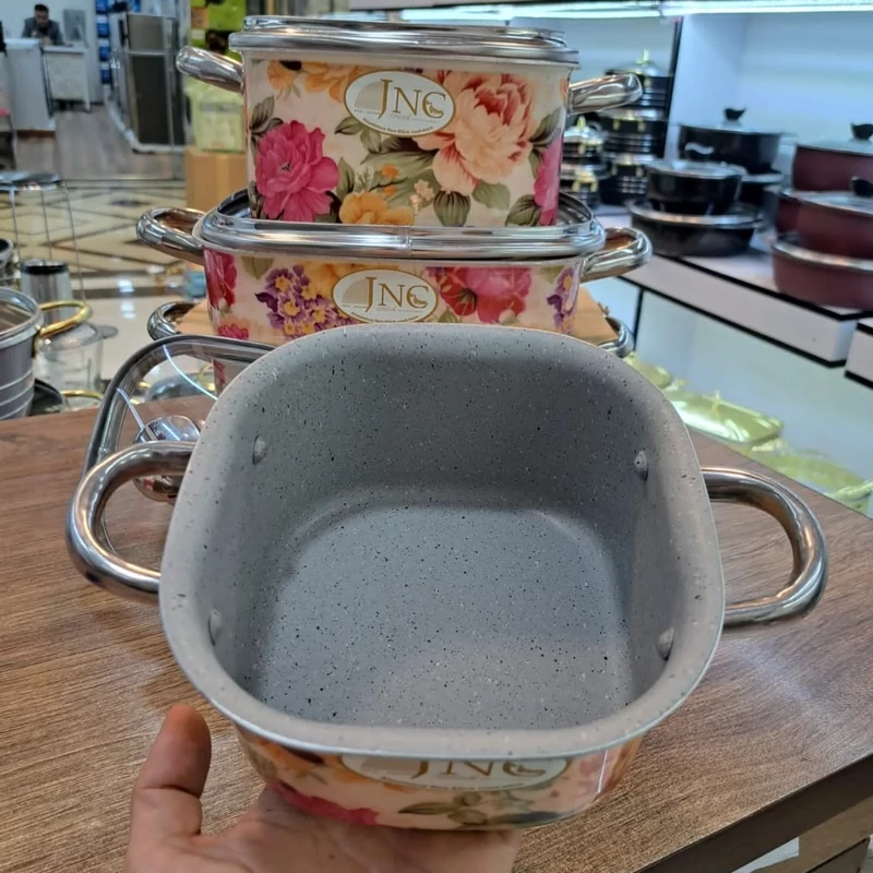 سرویس قابلمه گرانیتی قالب مربع گلدار جنوب 7پارچه بسیار با کیفیت و زیبا داخل گرانیت