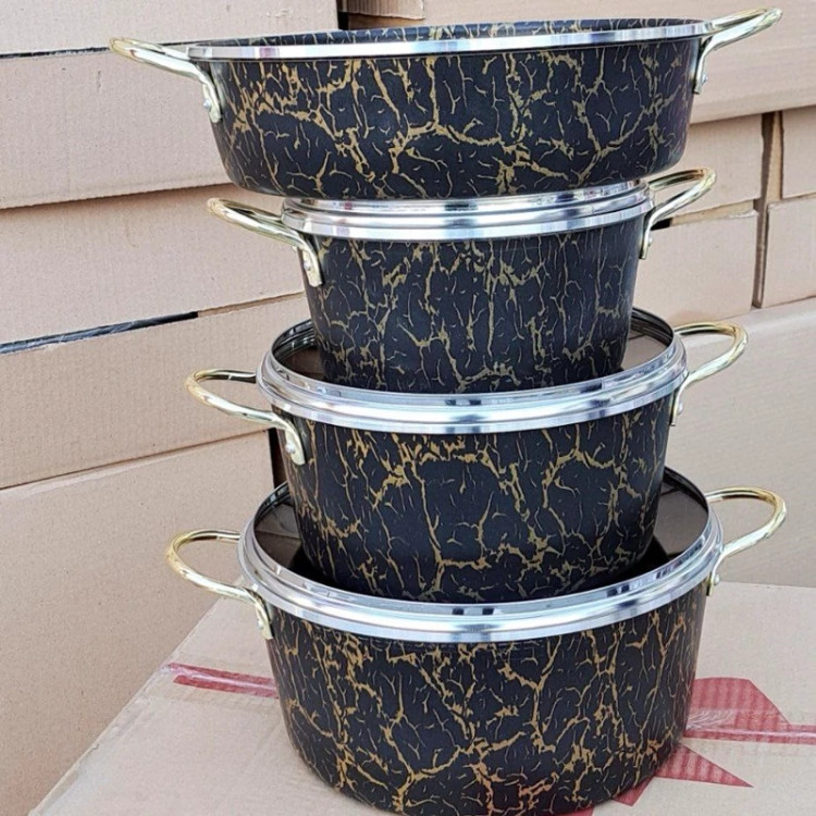 سرویس قابلمه 7پارچه، طرح سنگی داخل گرانیت دسته طلایی