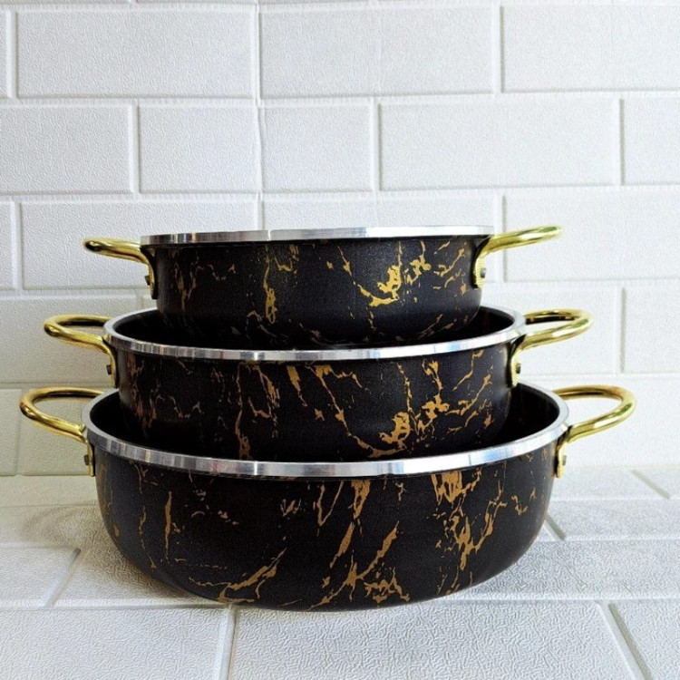 تابه سه تایی داخل گرانیت طرح سنگ تک دسته و دو دسته ،دسته ها طلایی نسوز