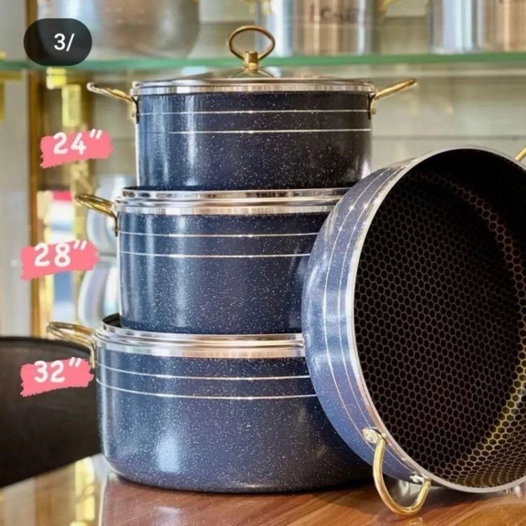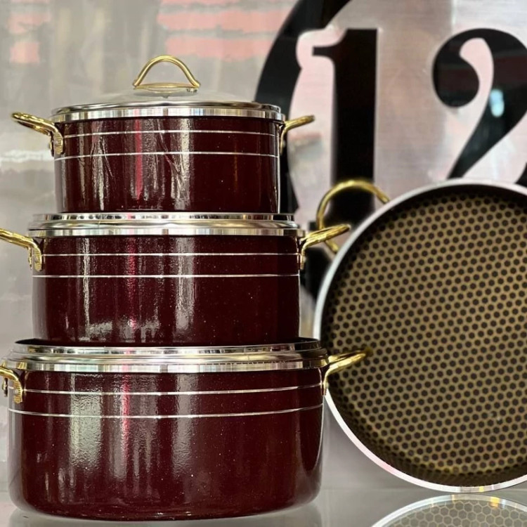 سرویس قابلمه 7پارچه داخل زنبوری دسته طلایی