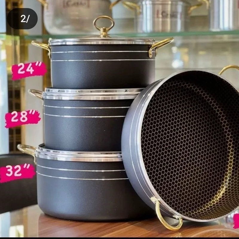 سرویس قابلمه 7پارچه داخل زنبوری دسته طلایی