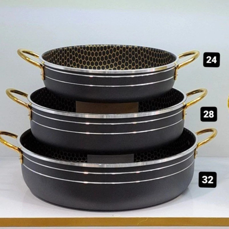 تابه داخل زنبوری دست طلایی سه تایی در سایزهای 24و28و32
