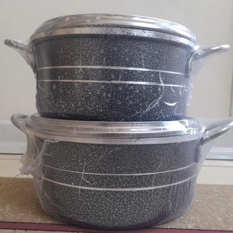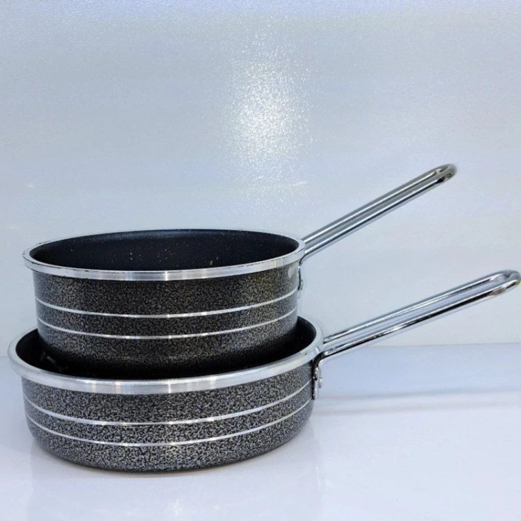 قابلمه ها و تابه های تک سایز بدنه چکشی فریال بدنه چکشی وزن سنگین دسته و قپه نقره ای گرانیت مشکی