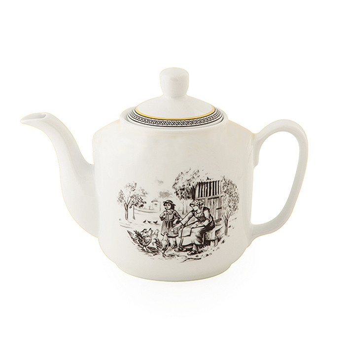 قوری چینی زرین سایز متوسط در طرح ویلیج دارای فیلتر ارتفاع قوری 12 و قطر کفه 8 سانتیمتر