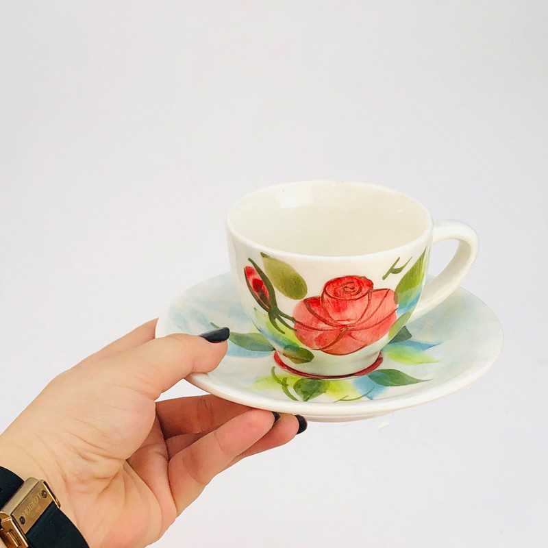 طول و عرض نعلبکی 15 در 15 سانتیمتر و ارتفاع آن 1 سانتیمتر است. و طول و عرض فنجان 9 در 9 و ارتفاع ان 6.5 سانتیمتر میباشد.