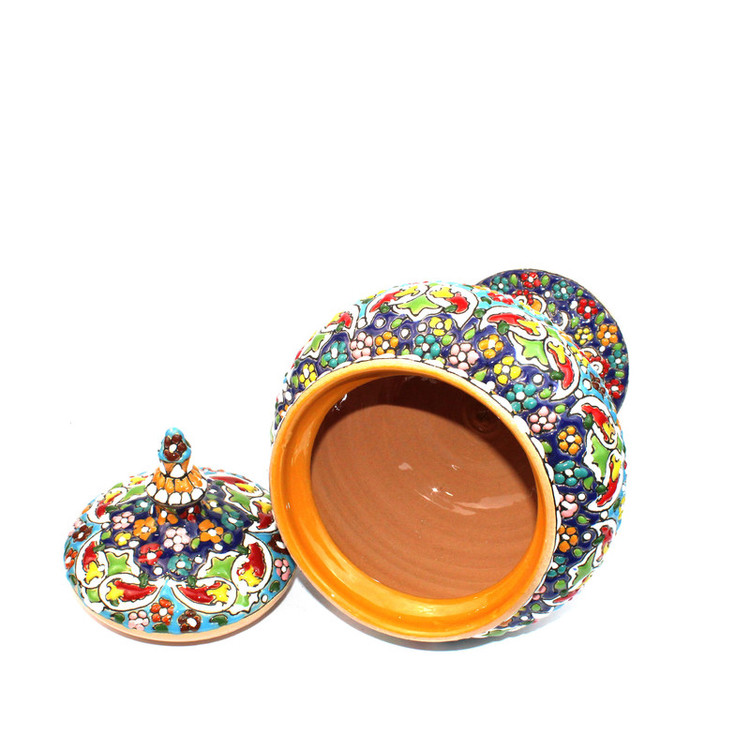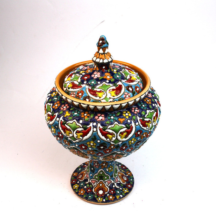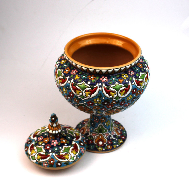 شکلات خوری سفالی مدل مینا کاری : در این کالا ها بدلیل اینکه کالا کار دست می باشد... و سختی کار بسیار زیاد است ممکن است نقش کالایی که ارسال می شود اندکی با عکس متفاوت باشد...