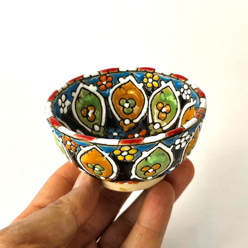 توجه داشته باشید چون این کاسه مینا کاری توسط دست ساخته شده و نقوش آن با دست کشیده شده است ممکن است کمی از منظر سایز و نقوش با نمونه ارسال تفاوت خیلی ریزی داشته باشد.