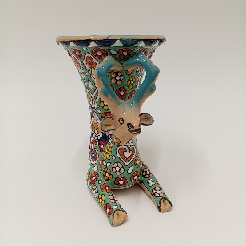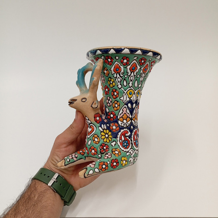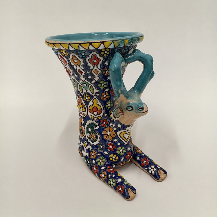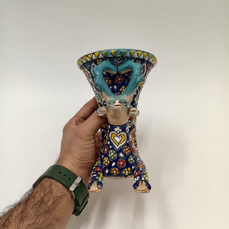 جنس ریتون طرح بز سفالی است. در کوره پخته شده و ریزش مینا ندارد.