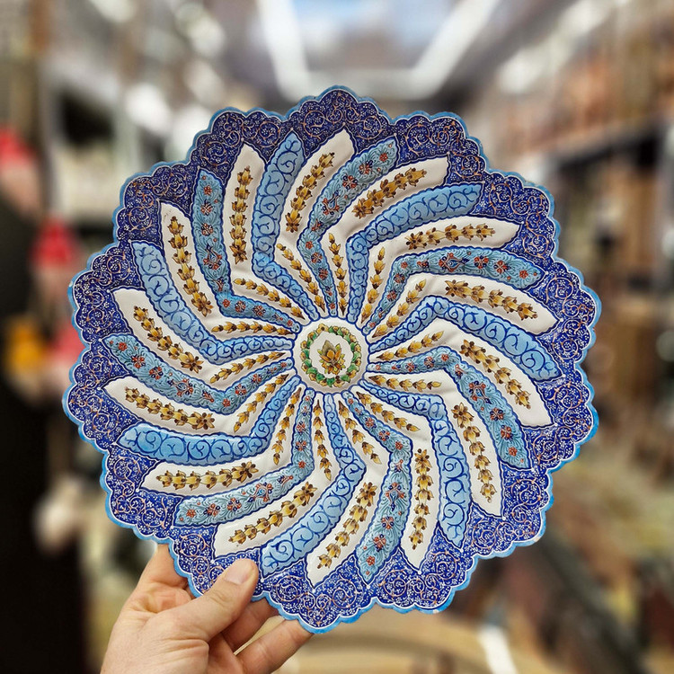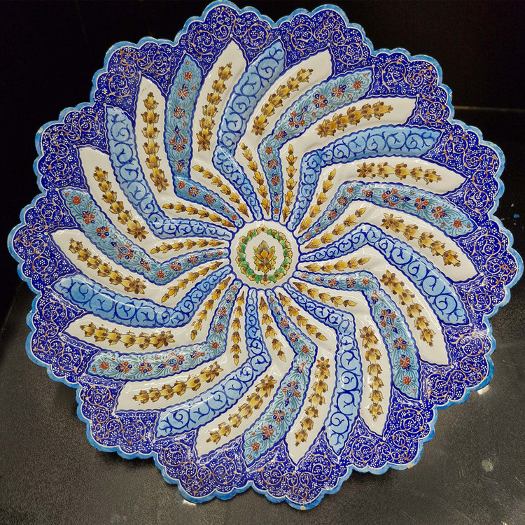 جنس بدنه این بشثاب زیبا و ضخیم از مس است و نقاشی روی آن صد در صد دستی میباشد .