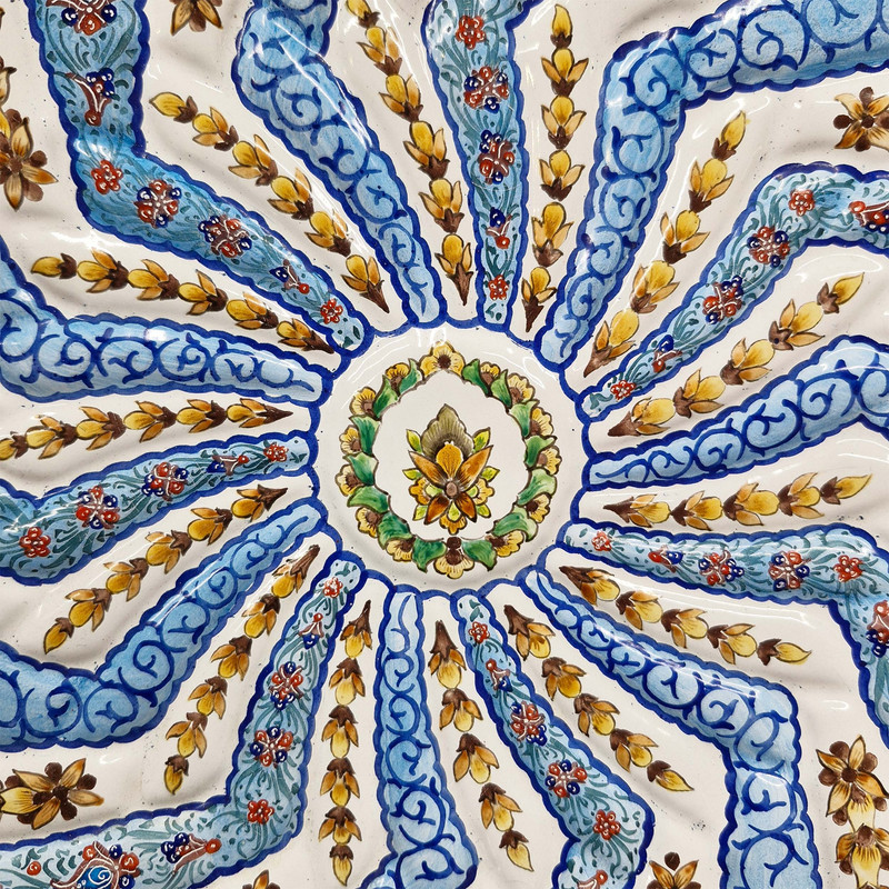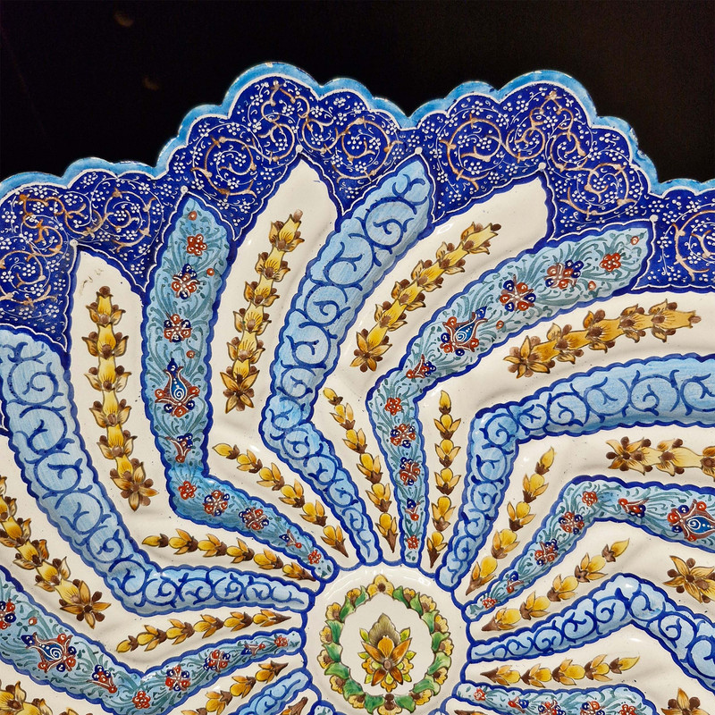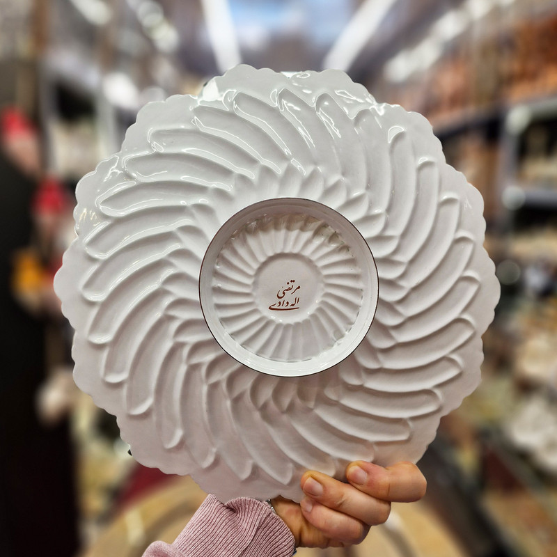 جنس بدنه این بشثاب زیبا و ضخیم از مس است و نقاشی روی آن صد در صد دستی میباشد .
