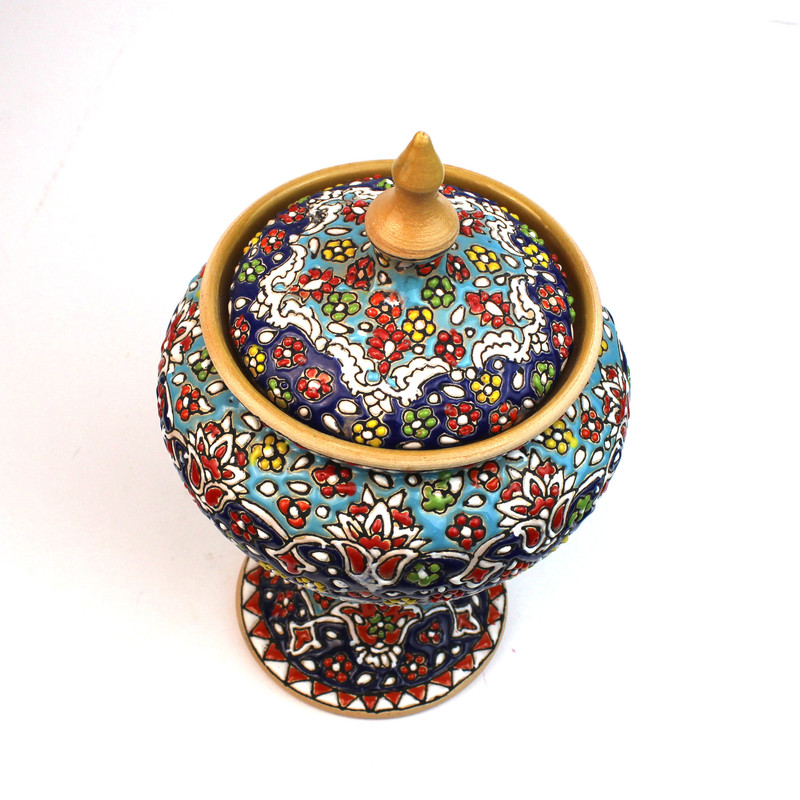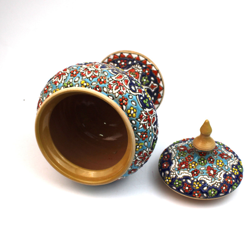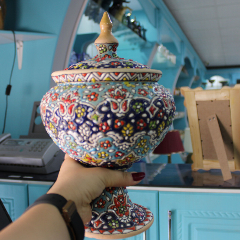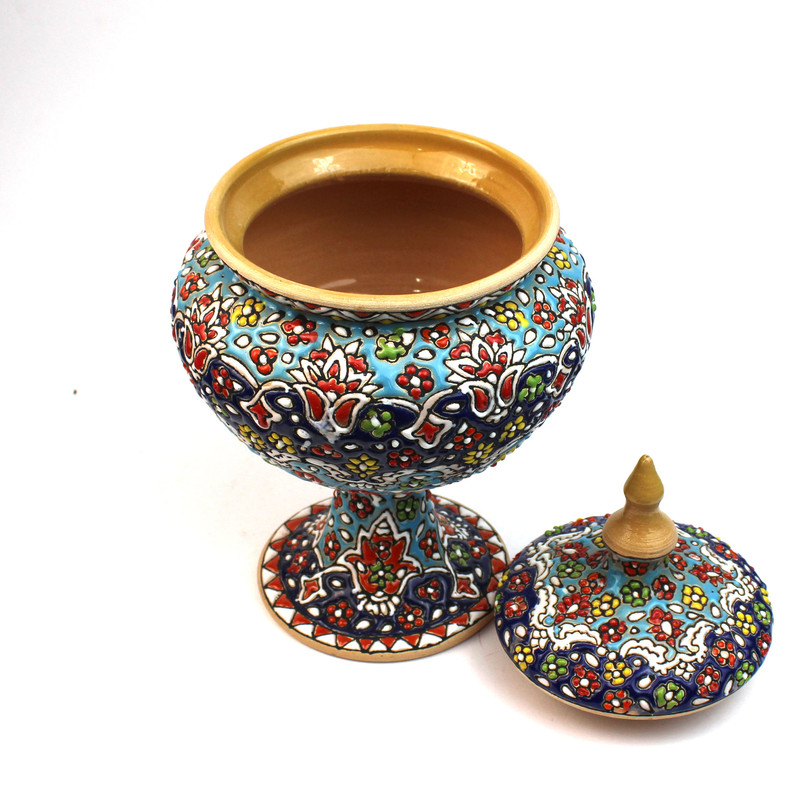 شکلات خوری سفالی مدل مینا کاری : در این کالا ها بدلیل اینکه کالا کار دست می باشد... و سختی کار بسیار زیاد است ممکن است نقش کالایی که ارسال می شود اندکی با عکس متفاوت باشد...
