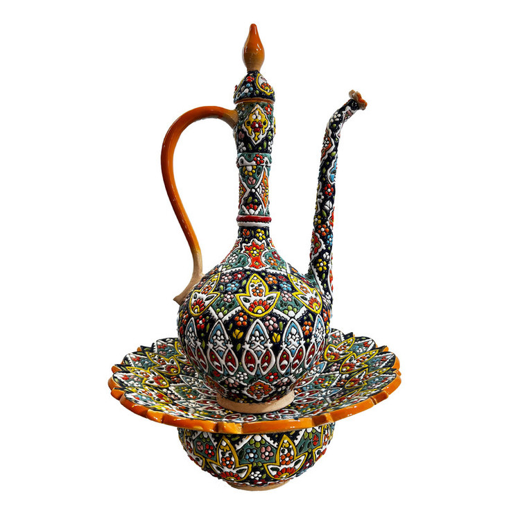 ست آفتابه و لگن میناکاری مدل اسلیمی کد m1001
