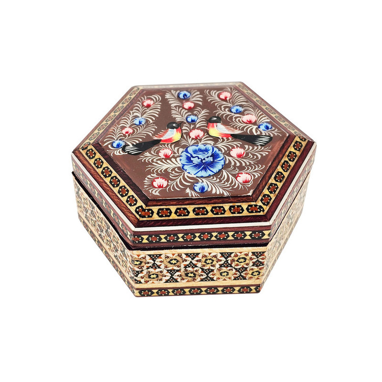 جعبه جواهرات خاتم کاری مدل گل و مرغ