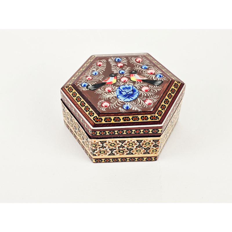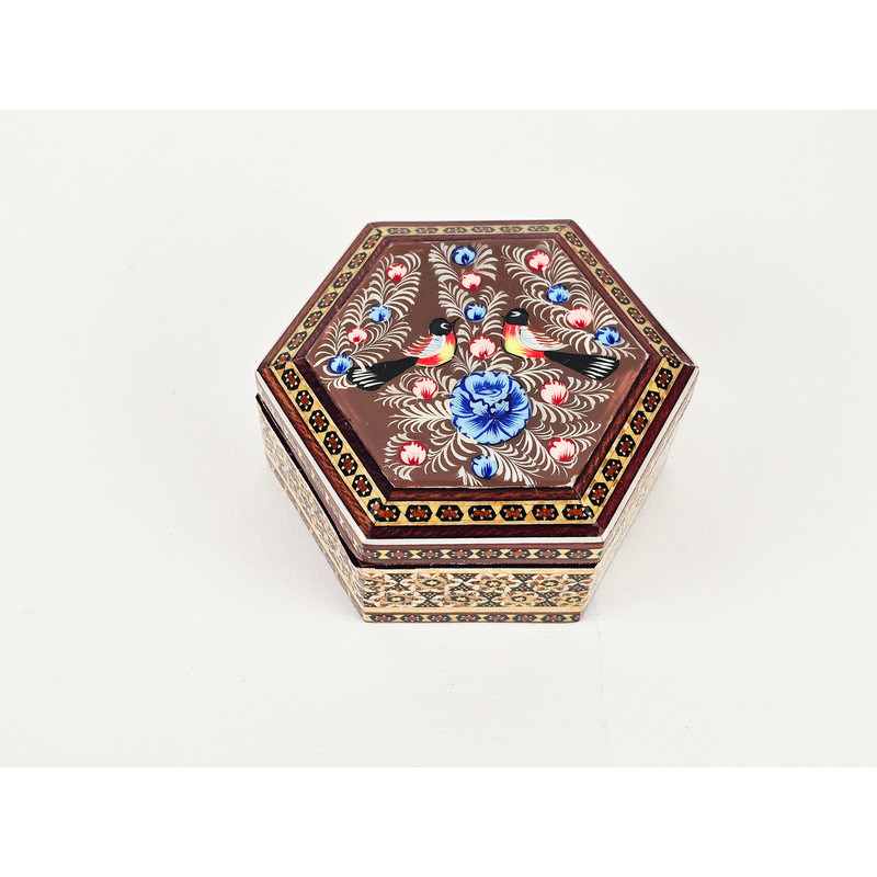 جعبه جواهرات خاتم کاری مدل گل و مرغ