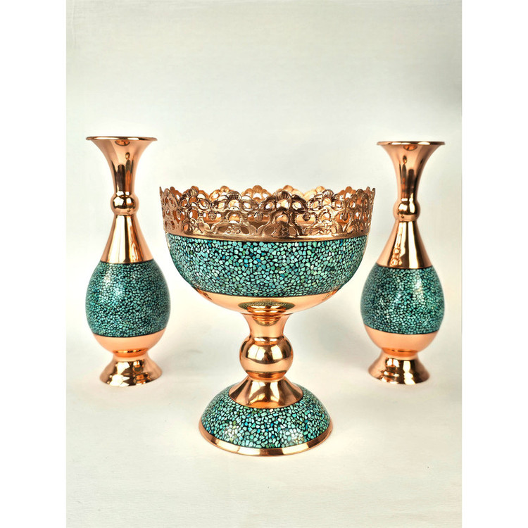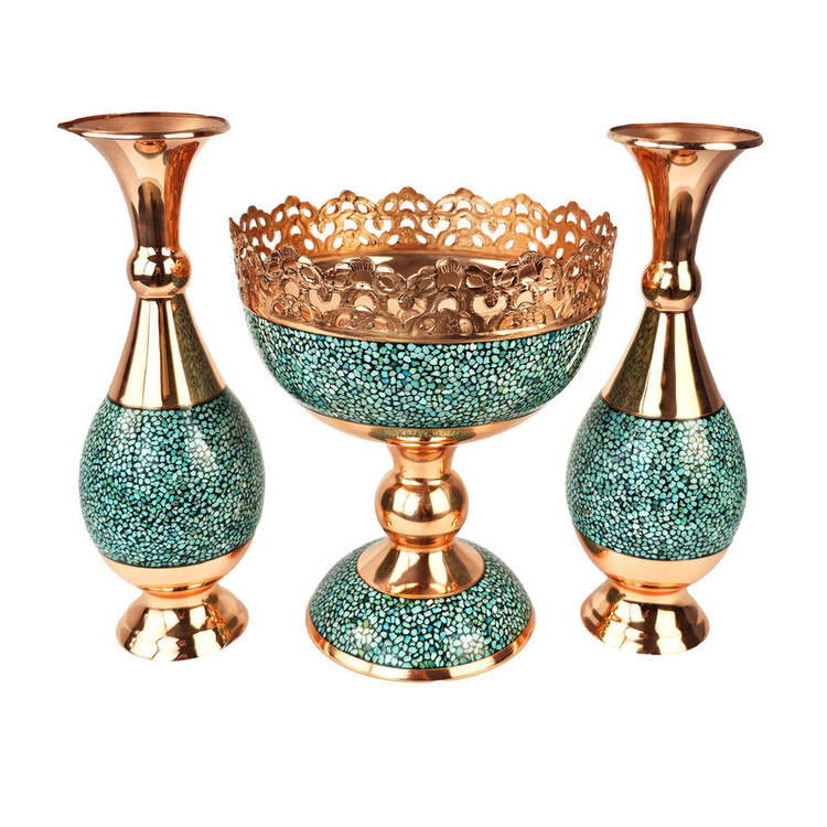 ست 3 تکه آجیل خوری و گلدان فیروزه کوبی مدل شیرازی کد ag20