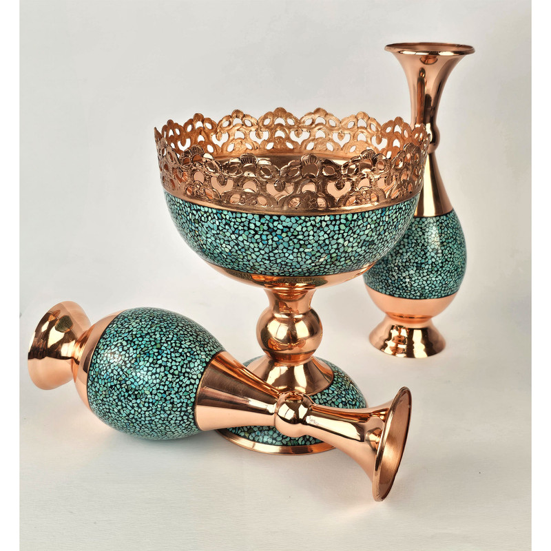 ست 3 تکه آجیل خوری و گلدان فیروزه کوبی مدل شیرازی کد ag20