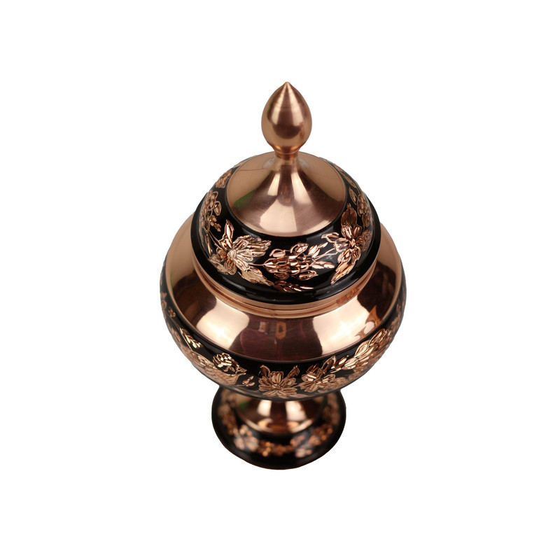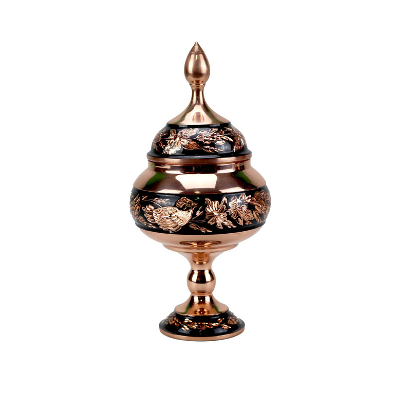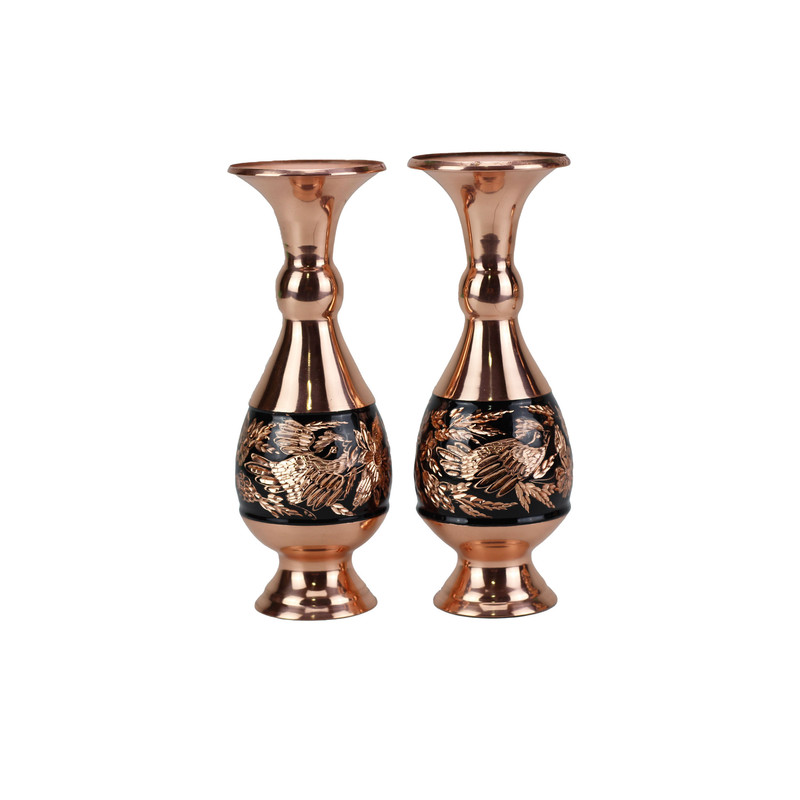 ست 3 تکه شکلات خوری و گلدان مسی مدل گل و مرغ کد 1231