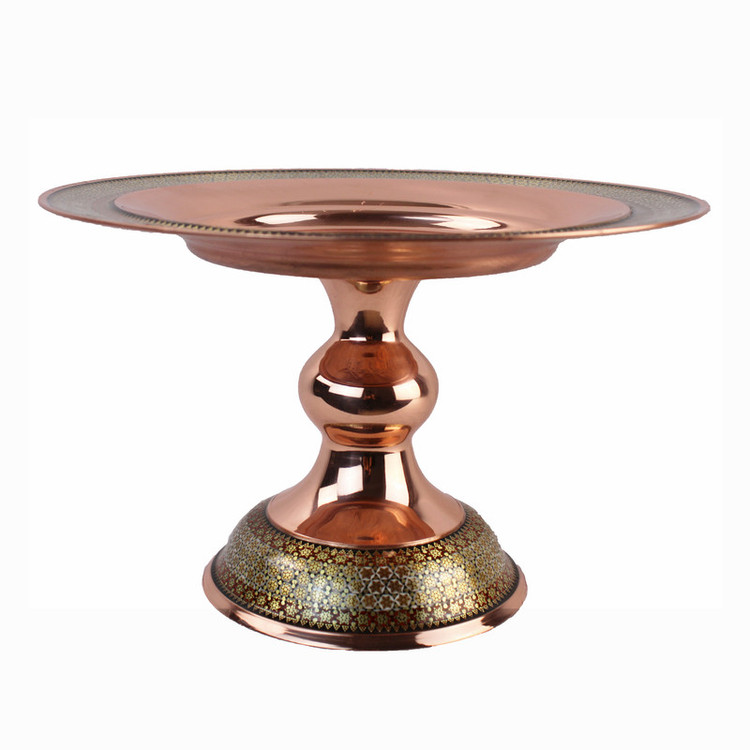 شیرینی خوری خاتم کاری مسی طرح گرد مدل sh30