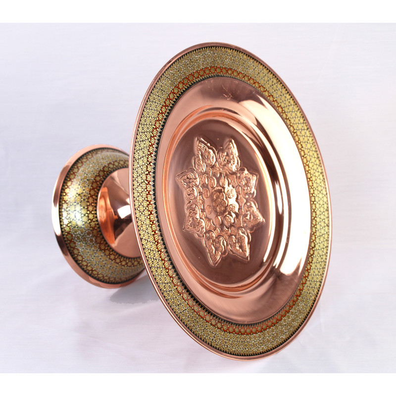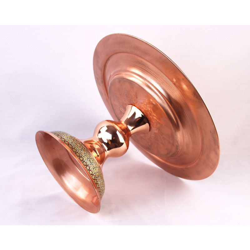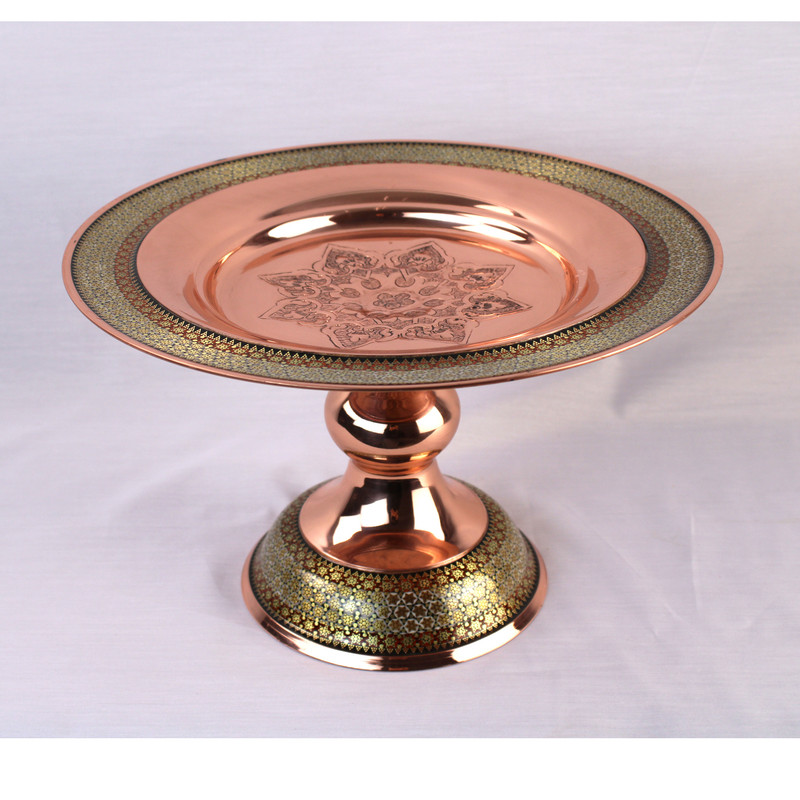 شیرینی خوری خاتم کاری مسی طرح گرد مدل sh30