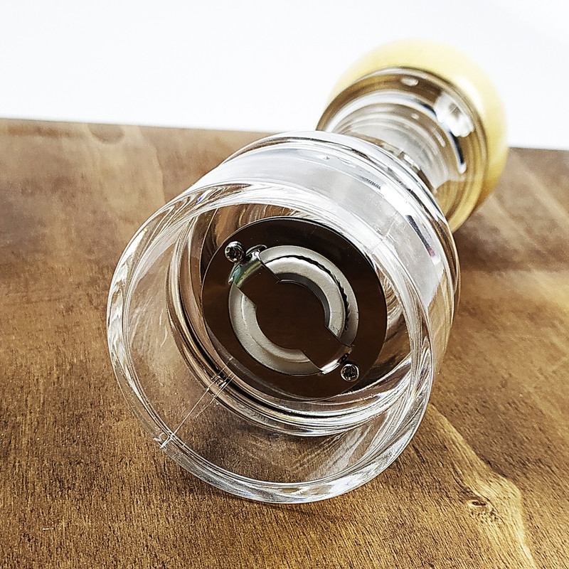 مهره قابل تنظیم از جنس استنلس استیل و مکانیزم سنگ زنی سرامیکی ، که می تواند ضخامت ذرات را با چرخاندن پیچ به چپ و راست تنظیم کند. هرچه در قسمت بالا محکم شوید ، خروجی آسیاب شما ریزتر خواهد بود.اکریلیک بکار رفته کاملا نشکن است و با افتادن از دست شما نخواهد شکست.