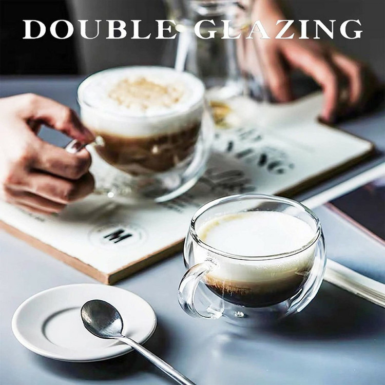 دارای بدنه دوجداره قابلیت حفظ دمای حداکثری نوشیدنی حجم 150 میلیلیتر دسته دار جنس بدنه شیشه