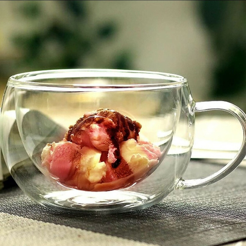 دارای بدنه دوجداره قابلیت حفظ دمای حداکثری نوشیدنی حجم 150 میلیلیتر دسته دار جنس بدنه شیشه