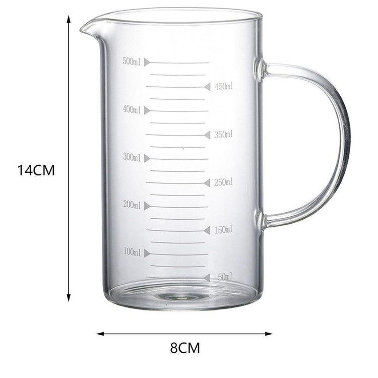 ۵۰۰ میلیلیتر: ۸ سانتیمتر × ۱۴ سانتیمتر / ۳.۱۵ اینچ × ۵.۵۱ اینچ