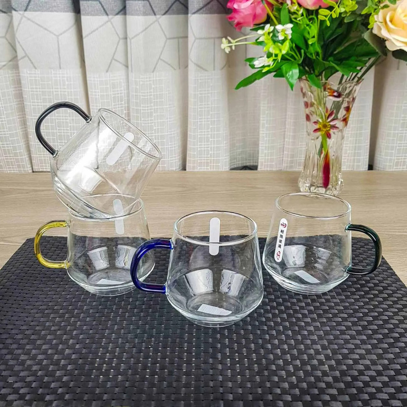 رنگ هر دسته ی لیوان متفاوت و شبیه تصویر است-گنجایش هر لیوان 400 میلی لیتر-جنش شیشه پیرکس