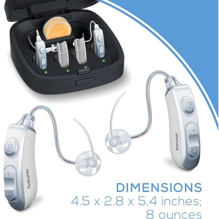 اقلام همراه: (2) تقویت کننده های شنوایی دیجیتال، (8) گوش قابل تعویض در اندازه های مختلف، (2) باتری های قابل شارژ یدکی، (1) برس تمیز کننده، (1) کپسول خشک کن، (1) جعبه ذخیره سازی، (1) راهنمای دستورالعمل