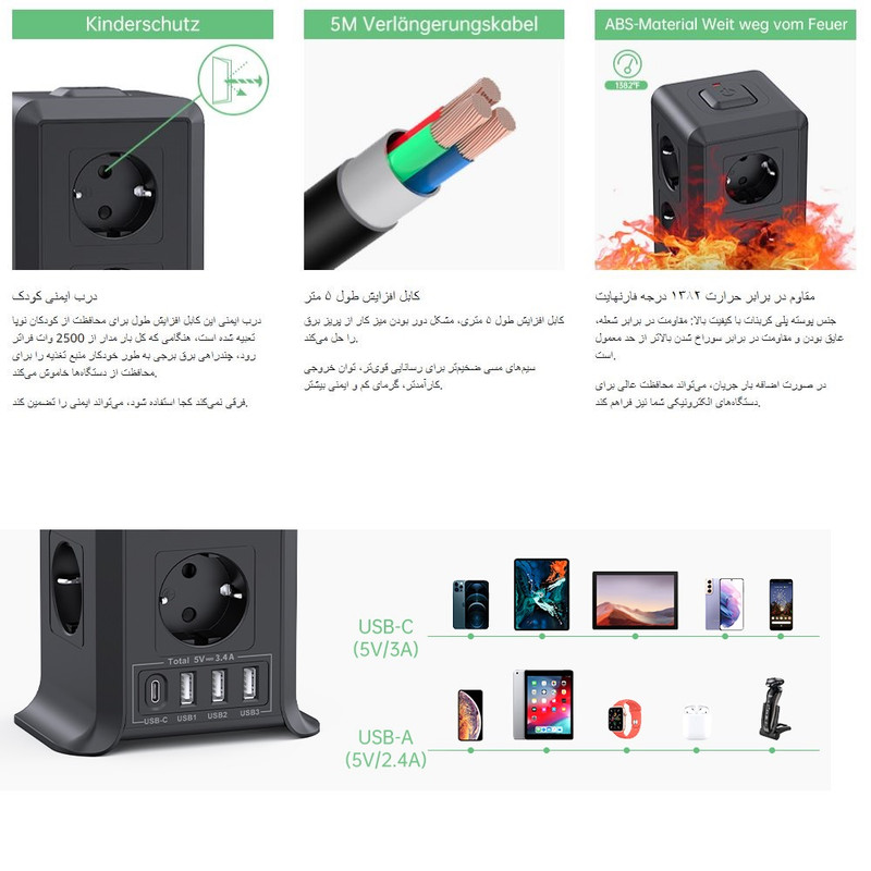 چندراهی برق و محافظ ولتاژ سازگار با