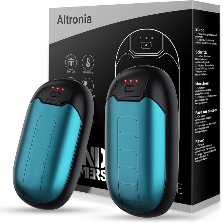 گرم کن های مغناطیسی 2 در 1: Altronia یک جفت دست گرم کننده منحصر به فرد ارائه می دهد که می تواند به صورت جداگانه برای هر دست استفاده شود یا در یک واحد ترکیب شود. یکی از آن ها را در هر جیب کت قرار دهید تا گرم شود بدون اینکه با هر دو دست خود را عوض کنید یا نگه دارید. این گرم کننده ها به سرعت گرمای ملایمی را ارائه می دهند و اطمینان حاصل می کنند که هر دو دست به راحتی گرم می شوند.