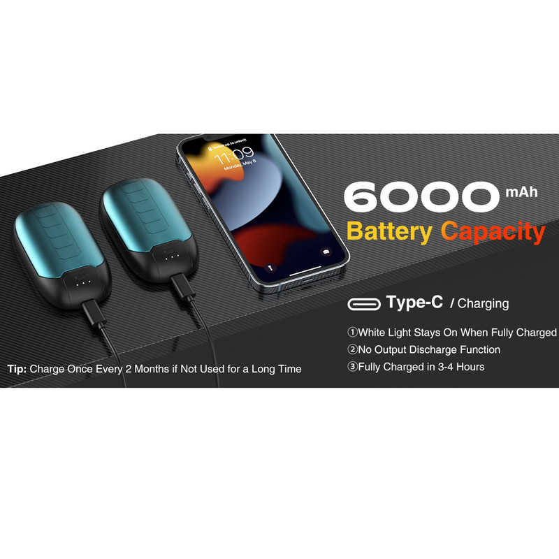 شارژ سریع، ظرفیت بزرگ: این دست گرمکن قابل شارژ USB دارای یک باتری لیتیومی قابل توجه 3000mAh*2 با درگاه USB-C برای استفاده طولانیتر است. با یک آداپتور 5V/2A و کابل شارژ دوگانه ما، 5-7 ساعت عمر باتری را فراهم می کند. هر دو دست گرم کننده می توانند تنها در 3-4 ساعت به طور کامل شارژ شوند. ایده آل برای فعالیت های خارج از منزل مانند فوتبال، انتظار اتوبوس مدرسه در هوای سرد، ماهیگیری، پیاده روی، کمپینگ، اسکی، مسافرت و پیاده روی با سگ.