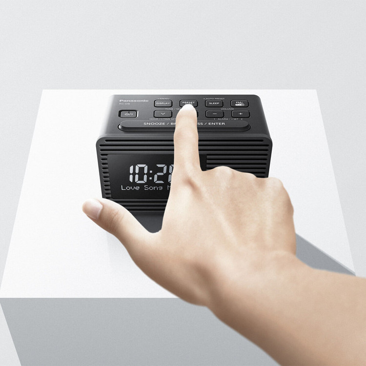 ساعت رادیویی پاناسونیک RC-D8EG-K DAB+ (عملکرد شارژ USB، دکمه تعویق، تایمر خواب، کلید مورد علاقه) مشکی