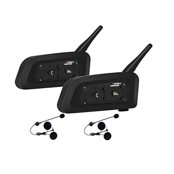 VNETPHONE V6 Riders چند منظوره برای موتورسیکلت، بلوتوث 5.1، 2 تکه مکالمه دو طرفه، 1 دستگاه اصلی میتواند 5 دستگاه فرعی را تغییر دهد فاصله مکالمه 800 متر (تقریباً 2600 فوت) اتصال خودکار به تماس زمان مکالمه 18 ساعت زمان آماده به کار 260 ساعت سطح ضد آب ip65
