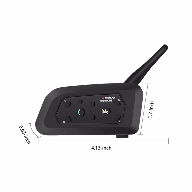 VNETPHONE V6 Riders چند منظوره برای موتورسیکلت، بلوتوث 5.1، 2 تکه مکالمه دو طرفه، 1 دستگاه اصلی میتواند 5 دستگاه فرعی را تغییر دهد فاصله مکالمه 800 متر (تقریباً 2600 فوت) اتصال خودکار به تماس زمان مکالمه 18 ساعت زمان آماده به کار 260 ساعت سطح ضد آب ip65