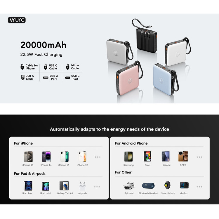 پاوربانک وراوریس مدل T2066 ظرفیت 20000 میلی آمپر ساعت