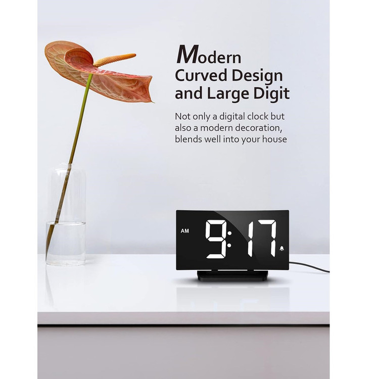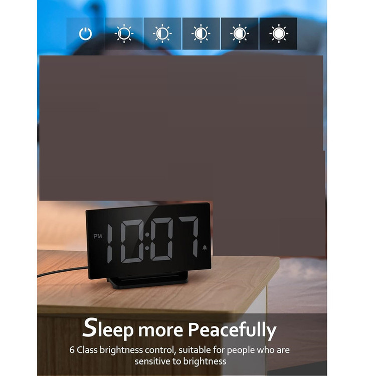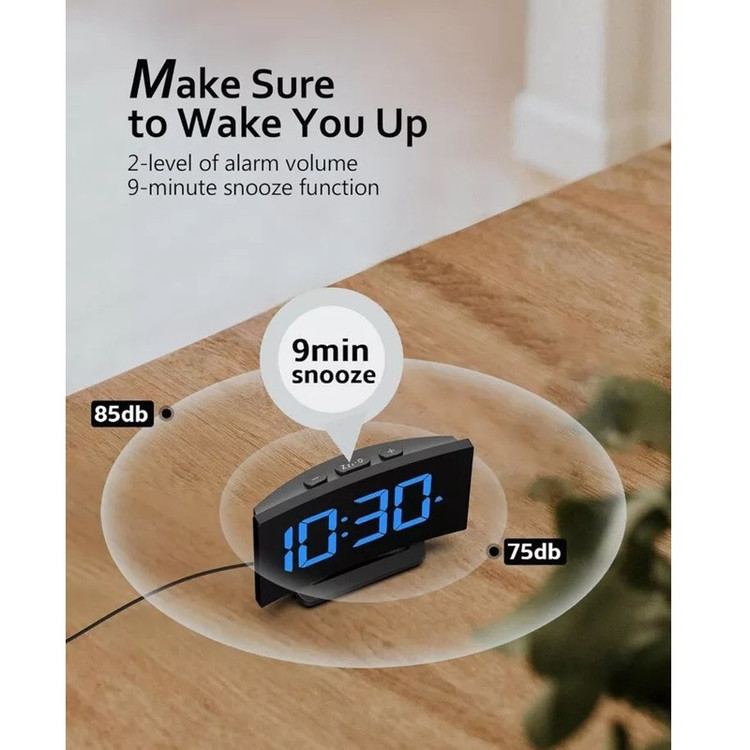 نمایشگر 12 ساعته، نمایشگر 24 ساعته، زنگ هشدار، نمایشگر LED، زنگ هشدار به تعویق انداختن، طراحی منحنی، تنظیم آسان