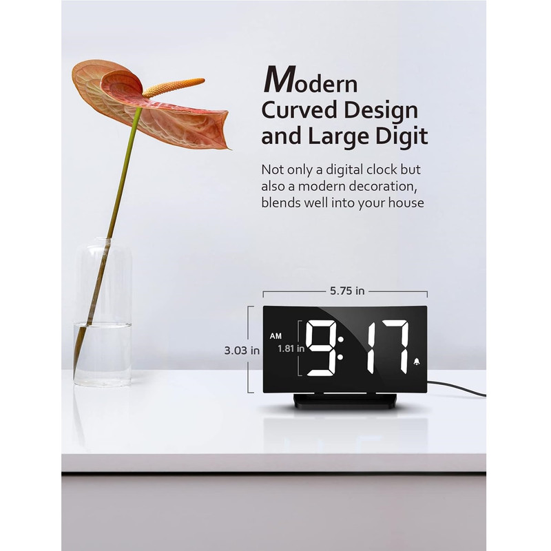 نمایشگر 12 ساعته، نمایشگر 24 ساعته، زنگ هشدار، نمایشگر LED، زنگ هشدار به تعویق انداختن، طراحی منحنی، تنظیم آسان