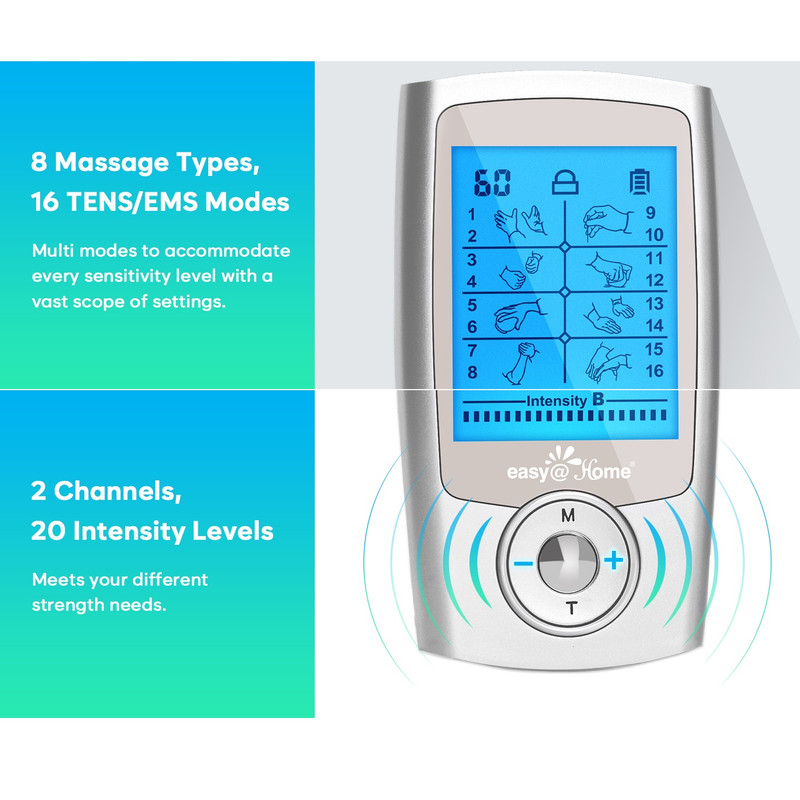 دستگاه تحریک کننده پالس الکترونیکی کوچک - ماساژور عضلانی Easy@Home دستگاه درمانی دستی تسکین درد - مدیریت درد شانه، مفصل، کمر، پا و