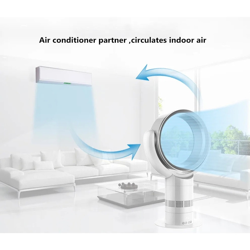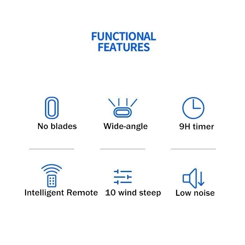 ویژگیهای ایمنی : بدون تیغه، ایمنی در برابر واژگونی، دارای کنترل از راه دور، دارای 9 سطح سرعت ، سطح نویز: <55 دسیبل (عملکرد بیصدا) ،بهرهوری انرژی بالا ، درجه انرژی کارآمد : A+ ،قدرت خنک کننده: ۳۵ وات (خنککننده)