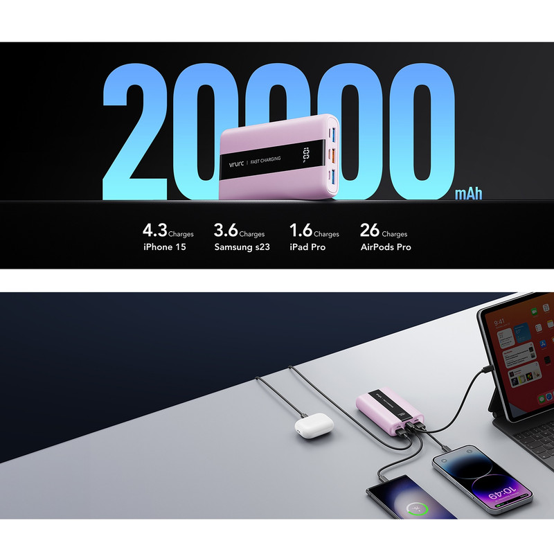 پاوربانک وراوریس مدل T2055 ظرفیت 20000 میلی آمپر ساعت