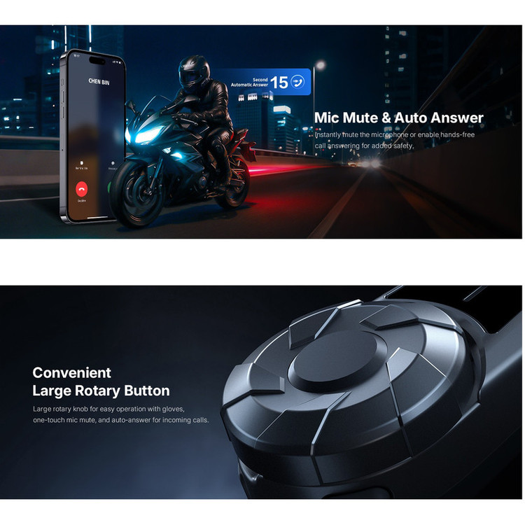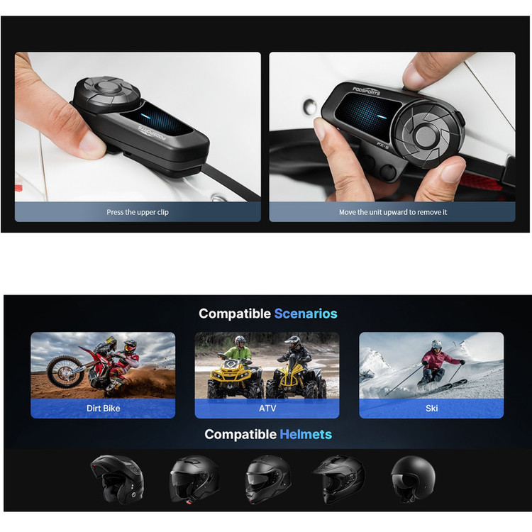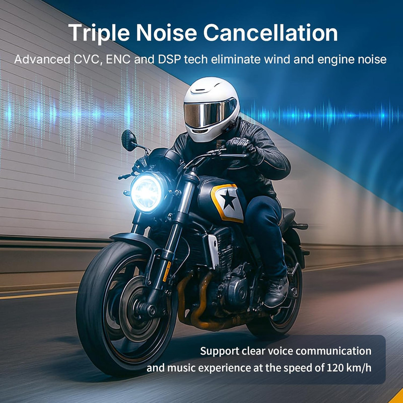 صدای استریوی HD و حذف نویز سهگانه : از صدای واضح برای تماسها و موسیقی در حین سفر لذت ببرید. هدست موتورسیکلت Fodsports FX-S مجهز به فناوری پیشرفته حذف نویز CVC و ENC و DSP است که صدای باد و موتور را برای برقراری ارتباط واضح کاهش میدهد.