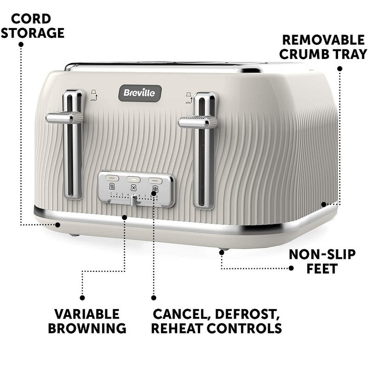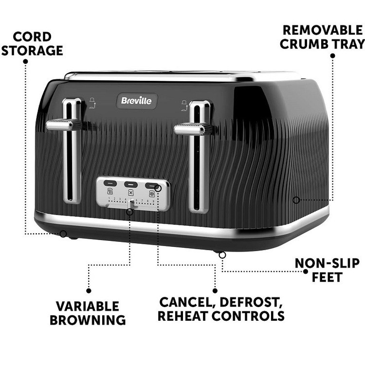 طراحی ، بافت و براق ویژگی Lift & Look تنظیمات را یخ زدایی کنید، دوباره گرم کردن دکمه های کنترل روشن، پایه های ضد لغزش شکاف نان عمیق و با عرض متغیر سینی خرده نان قابل جابجایی