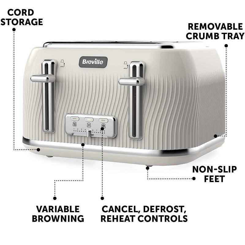 طراحی ، بافت و براق ویژگی Lift & Look تنظیمات را یخ زدایی کنید، دوباره گرم کردن دکمه های کنترل روشن، پایه های ضد لغزش شکاف نان عمیق و با عرض متغیر سینی خرده نان قابل جابجایی