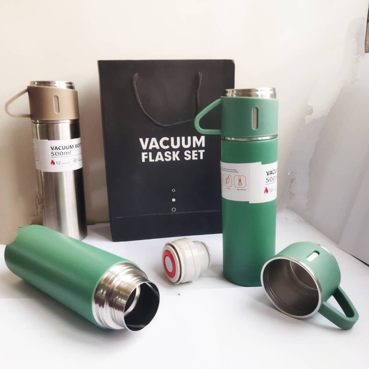 فلاسک مدل 20 گنجایش 0.5 لیتر به همراه لیوان سفری مجموعه 3 عددی