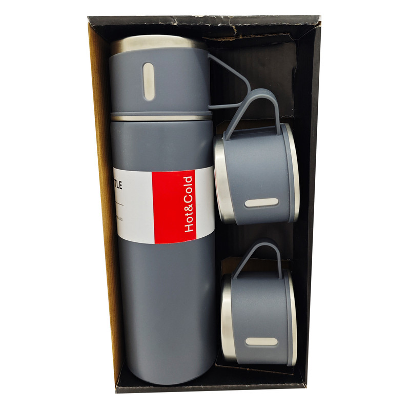 فلاسک مدل مسافرتی گنجایش 0.5 لیتر به همراه لیوان سفری بسته 3 عددی