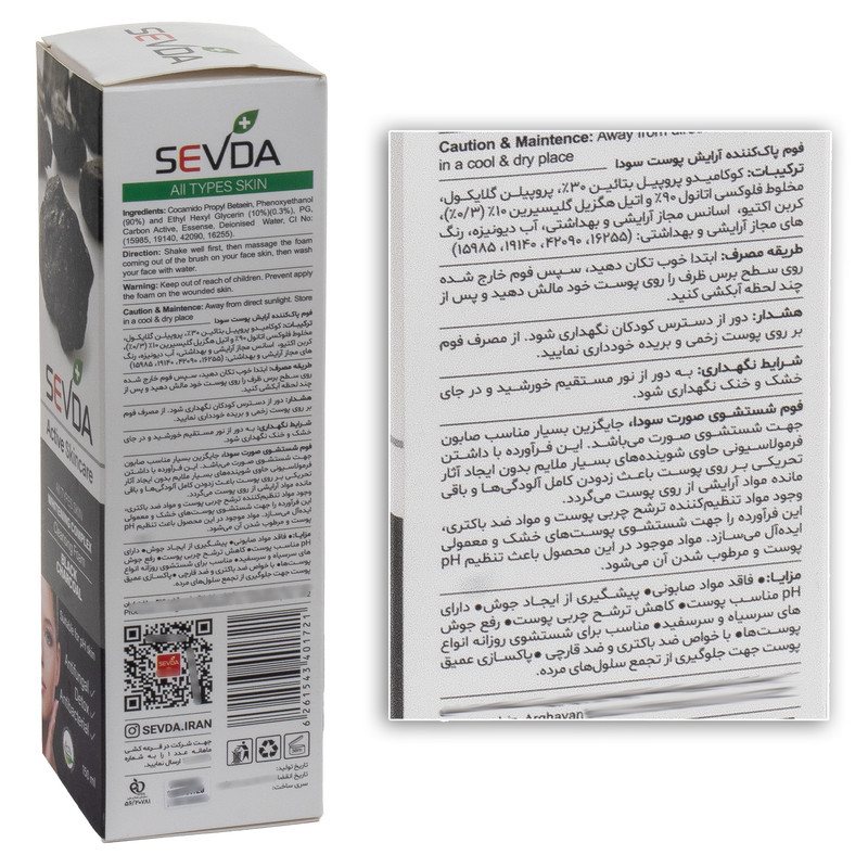 فوم شستشو صورت سودا مدل ذغال فعال حجم 150 میلی لیتر